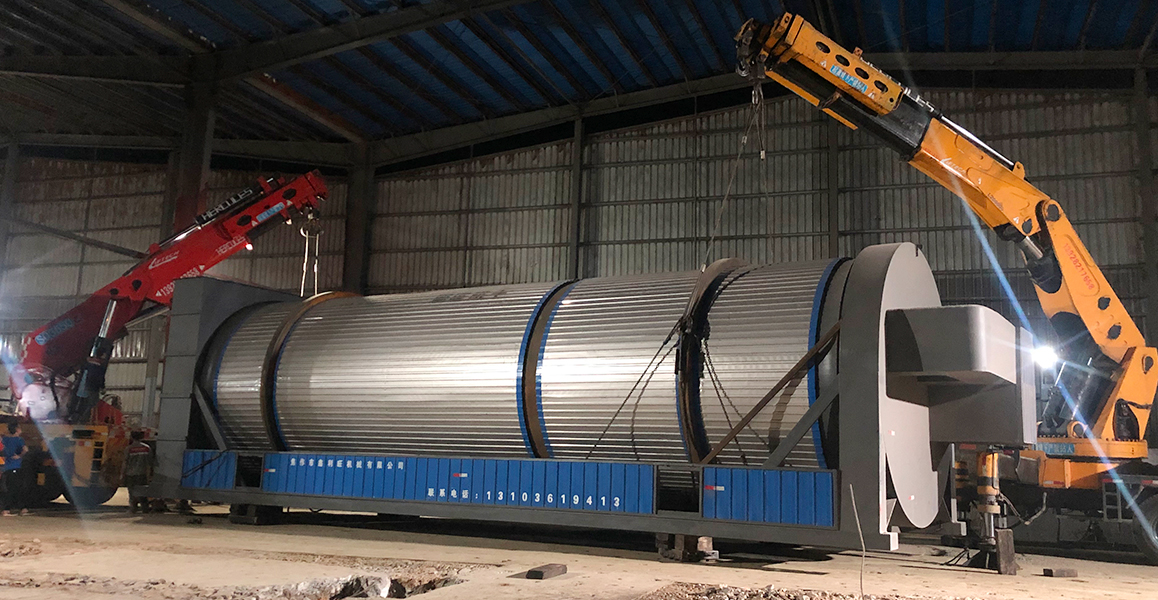 01 設(shè)備作用固廢污泥三層滾筒烘干設(shè)備,設(shè)備尺寸15.8m×4.4m×5.7m,水份65%烘干至30%,一天200t,內(nèi)層316L不銹鋼,利雅路天然氣燃燒機(jī)供熱。